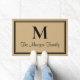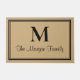 Elegant stylish modern custom monogram doormat in classic tan and black Double Borders. You can personalize this simple modern tan and black double borders with your family's last name in script and a serif style monogram initial.
