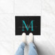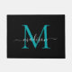 Elegant Black Teal Custom Monogram Script Name Doormat