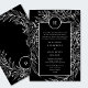 Elegant Black Tuxedo Bright White Monogram Wreath Invitation