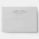 This wedding envelope features a minimalist design with a clean, white background and black text for a modern and elegant look. The layout is simple and balanced, utilizing ample negative space to highlight the centered typography. Customizable placeholders allow for personalization of names, addresses, and dates, making it perfect for formal events or announcements. The classic serif font adds sophistication, while the structured composition conveys clarity and formality, ideal for weddings or significant celebrations.