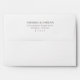 This wedding envelope features a minimalist design with centered text on a clean white background, creating an elegant and sophisticated look. The black serif font adds a touch of classic charm, while the ample negative space emphasizes readability and simplicity. Perfect for formal invitations or announcements, this design conveys a refined mood through its understated style and crisp typography.
