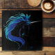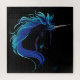 A striking unicorn emerges from the darkness, its flowing mane glowing in shades of electric blue and teal against a deep black background. This elegant fantasy illustration captures the mystical beauty and quiet power of a magical creature, blending modern tones with a sleek, minimal aesthetic. Perfect for fantasy lovers, unicorn enthusiasts, and anyone drawn to adding a touch of magic and sophistication to any space.