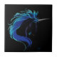 Elegant Black Unicorn Blue Silver Magical Fantasy Tile