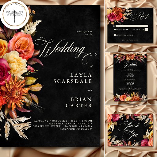 Elegant Black Vibrant Boho Floral Script WeddingDesigned by Kathe Santillo