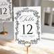 Set a timeless tone for your wedding reception with these Elegant Black Victorian Floral Table Number Cards. “Table” is displayed in graceful calligraphy, with the table number, couple’s names, and wedding date shown below in refined serif lettering. An ornate frame of roses, leaves, and baroque-inspired scrollwork surrounds the design, creating a classic, heirloom look perfect for formal and traditional celebrations. This card measures 3.5"x5". Edit each table number individually and add them to your cart to ensure a smooth ordering process.