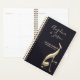 Unique, chic, modern Gothic gold dog black wedding planner with couple names.
