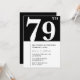 Plain white envelopes are included with paper invitations and will come to fit the invitation size you select. If you don’t need the envelopes, you may choose to not receive them by selecting the dropdown below "Envelopes" and choosing "None." If you’d like to have a design on your envelopes, you can browse all of these available envelopes to find the design that complements your Elegant Black White 79th Birthday Invitation.