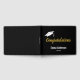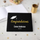 This black, white, and gold graduation guest book has a white graduate's cap in the upper left corner. Display text says 'Congratulations' in faux (not foil) gold script. You can personalize the guest book with the graduate's name in white text. You can even add the class year under the name. Also, there's text for the graduate's name and class year on the spine. All text can be edited or deleted.