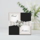 Elegant Black White Check Pearl Jewel Bow Invitation