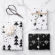 Elegant Black & White Christmas Trees Stars Wrapping Paper Sheets
