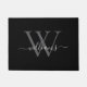 Elegant Black White Custom Monogram Script Name Doormat