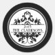 Give your holiday mail a sophisticated touch with this elegant round Christmas sticker. Designed with a bold black border and ornate damask ornament motif, this festive seal creates a classic, timeless look for the season. The center features customizable text for your family name and year, making it perfect for personalizing holiday cards, Christmas letters, party invitations, and seasonal gift packaging. Printed in classic black and white, this stylish sticker blends traditional holiday charm with modern elegance. Ideal for use as a return address seal, envelope sticker, or Christmas gift label, it adds a polished finishing touch to every holiday correspondence. Fully customizable for your family name, year, and message