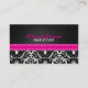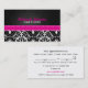 Elegant Black and White Damask with hot pink ribbon Salon Business Cards.