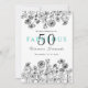 Elegant black white floral fiftieth birthday invitation