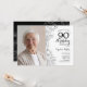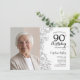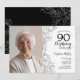 Elegant Black White Floral Photo 90th Birthday Invitation