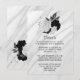 Elegant white and black flowers with gray leaves on silver gray marble botanical details enclosure card.