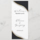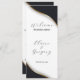 This Elegant Black White Gold Wedding Menu is designed with black script text on a white background with black and gold accents. The front side text includes: Welcome, DINNER MENU, The Bride and Groom's First Names and Wedding Date. The reverse side text includes: The Menu, and a section to insert your full menu from - this sample includes: Appetizer, Entre and Dessert Selections. To personalize, simply insert your details into our easy template replacing the sample text.