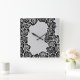 Elegant Black White Grey Roses Romantic Pattern Square Wall Clock