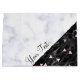 Stylish and modern design featuring faux rose gold triangles, white and black marble.
