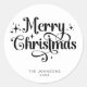 Elegant Black White Merry Christmas Script Custom Classic Round Sticker