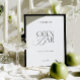 An elegant black and white open bar sign designed with refined serif typography and delicate calligraphy for a look that feels both timeless and fresh.