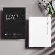Elevate the anticipation of your special day with our Elegant Black White Monogram Minimalist Wedding RSVP Cards. Embodying simplicity and elegance, these RSVP cards seamlessly blend a clean, minimalist design with the personal touch of your cherished moments captured in a black and white design with an elegant monogram of the couple's initials. The dark aesthetic of the sophisticated palette adds a touch of gothic allure to the modern and traditional elements, creating a chic and timeless announcement. Each RSVP card is a harmonious fusion of simplicity and grandeur, offering a minimalistic yet impactful statement that beautifully encapsulates the essence of your upcoming wedding.