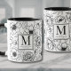Celebrate the special woman in your life with this stylish and sophisticated monogram mug, designed to bring a touch of elegance to her daily routine. Featuring a chic black-and-white floral pattern reminiscent of high-fashion and luxury perfume brands, this mug combines fashionable design with timeless style. The girly design includes a bold serif initial that stands out, while her name is gracefully written below in delicate script typography. Whether it’s for a Mother, Grandmother, or another cherished friend or family member, this mug adds a personalized and chic flair to any occasion. The black-and-white color scheme is both versatile and stylish, but you can customize the colors to match her taste. This makes it not just a gift, but a meaningful keepsake that she’ll treasure every day.Stylish Modern Elegant Black White Monogram Mug