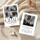 Announce your graduate’s milestone in timeless, sophisticated style with this elegant black and white graduation announcement card. Featuring a crisp white background, the design highlights the word “GRAD” in a modern serif typeface, accented with a stylish graduation cap icon above the “R.” The flowing tail of the “R” transitions into a sleek tassel that connects the graduate’s name, school, and class year, creating a cohesive and high-end finish.