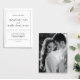 Yes, you can print on the back of your invitation for free! Most designs already have a corresponding design on the back that can be personalized using the Design Tool and going to Layers. This is a great way to communicate more information or further personalize your Elegant Black White Wedding Photo Invitation. The option is really up to you.