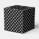 Personalized wedding favor boxes. Elegant black and white polka dots pattern design. Cute gift idea for guests. Custom background color with white polkadots. Add your own thank you message with name of bride and groom on top. Small size box for candy and little trinklets. Fancy script print for classy marriage couple.
