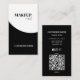 elegant black &white QR code makeup artist business card ,Make a bold and sophisticated first impression with this elegant black and white makeup artist business card. Designed with a clean, minimalist aesthetic, this timeless card pairs modern typography with a scannable QR code for effortless access to your portfolio, booking page, or social media.
