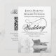 This beautiful wedding invitation features a gorgeous black and white photograph of a single long stemmed white rose lying on its side reflecting in a pool of water with waves and ripples. The design features a fancy calligraphy script with a long curly tail making it both modern and classic. Elegant, sophisticated and chic way to invite your friends and family to share in your special day. The back of the card has a custom note and QR code directing your guests to your wedding website for details and RSVP.