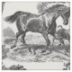 Monochrome black and white toile pattern with horses and trees for rustic country decor, English, French or American style. The horse is a majestic animal that embodies the spiritual power of independence, freedom, nobleness, endurance, confidence, triumph, heroism and competition. Its symbol is associated with strength, courage and freedom.