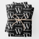 Elegant Black & White Script Calligraphy Monogram Wrapping Paper Sheets