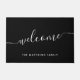 Elegant Black White Script Family Name Welcome Doormat