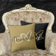 Personalize your Elegant Monogram Black Gold Script Name Throw Pillow and redecorate your table environment with success! Let us highlight that this pillow has inverted colors at the back. © Belytalia 2022