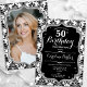 Elegant Black White Silver Photo 50th Birthday Invitation