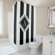 Elegant Black White Vertical Stripes Monogram Shower Curtain can add a classy touch to a bathroom. White background with bold black vertical stripes and diamond monogram centered on shower curtain. CLICK PERSONALIZE TEMPLATE OPTION AND ENTER YOUR MONOGRAM INITIAL