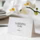 This elegant black and white wedding place card features refined serif and graceful script typography on a rich dark background, creating a timeless and sophisticated look. Designed for formal receptions and black-tie weddings, it perfectly complements a minimalist tablescape while maintaining a sense of luxury. Ideal for pairing with the full Sabrina wedding stationery suite, this design helps guide your guests to their seats with understated elegance. Fully customizable — edit names, table numbers, and layout to suit your event.
