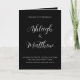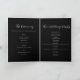 The program's color palette of stark black and pristine white sets a striking tone, symbolizing the union of two souls in a celebration of purity and commitment. Its sleek design and elegant script font evoke a sense of grace and sophistication, reflecting the solemnity and significance of the matrimonial vows to be exchanged.