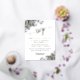 These gorgeous wedding RSVP cards feature a beautiful black and gold design. The front features elegant script lettering with gold foil frills in the corners on a classic white background. There is customizable form for your guests to fill out indicating whether they will attend or not, as well as the number of guests and choice of meals. There is space to enter a webpage URL so your guests can respond online if they prefer. The back is solid classic black.