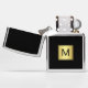 An elegant black background embellished with a golden square frame and custom monogram that you can edit with your desired initial.