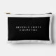 Promote your brand with this elegant accessory pouch featuring a black background, white text, and a white border.
