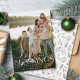 Elegant Blessings Script Photo Greenery Christmas Holiday Card