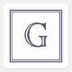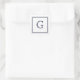 Elegant block monogram with double lined border square stickers. White with navy blue text.