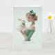 Elegant Blonde in Green w/ Pretty Bunny BDay Card