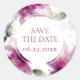 A beautiful save the date sticker featuring an artistic watercolour pink lily floral painting sat behind a white framed panel holding your personalized save the date details set in elegant text. Designed by Thisisnotme©