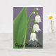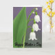 Soft colors and a serene botanical scene take center stage, featuring a small cluster of white, bell-shaped blossoms that hang like gentle lanterns from slender, arching green stems. Two closed buds sit just above the open flowers, as if leaning in with quiet affection, while three blooms trail downward in a tender cascade that feels like a soft embrace ❤️. A wide green leaf on the left steadies the arrangement, its fine parallel veins adding a calm, natural texture. The stems and foliage are fresh green, creating a soothing contrast against the luminous white petals that look smooth and porcelain-like. The background fades gradually from light lavender near the top to a muted green-grey toward the bottom, giving the whole piece a calm, airy glow. Along the bottom edge, a warm message appears in flowing lettering in a golden tone, centered and easy to notice without overpowering the flowers 🌼. The blossoms are arranged slightly right of center, with the broad leaf balancing the left side against the lavender-to-green gradient backdrop.