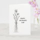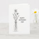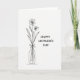 This card features a white background with a simple black line drawing of a bouquet that feels like a gentle gift offered with care ❤️. Two stylized flowers with soft, rounded petals sit near the top, their stems and long leaves curving in a way that suggests closeness and quiet affection. The flowers rest in a small bottle-shaped vase, and a tiny bow is tied neatly around the stems just above the opening, like a tender finishing touch. The bouquet sits on the left side, leaving plenty of open space that keeps the layout airy and calm. On the right, the words “HAPPY MOTHER’S DAY” are set in uppercase letters, stacked neatly and aligned to balance the artwork. The lettering is black to match the illustration, standing out clearly against the white background, with a slightly slanted, classic look. A small 🌼 detail is echoed in the gentle curve of the leaves, which sweep outward and then back toward the flowers. The thin black lines of the vase and bow are crisp, with the bouquet positioned left and the text placed to the right.