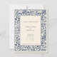 Announce your wedding in style with this elegant blue and cream floral Save the Date card. The front of the card features a vintage-inspired floral frame, encircling the essential wedding details in classic serif fonts. The timeless design, in shades of blue and cream, adds a touch of refined sophistication, perfect for formal or traditional weddings. The reverse side is fully covered in the same intricate floral pattern, creating a cohesive and luxurious look. This Save the Date card sets the tone for a beautifully elegant wedding day, inviting your guests to mark their calendars in style.